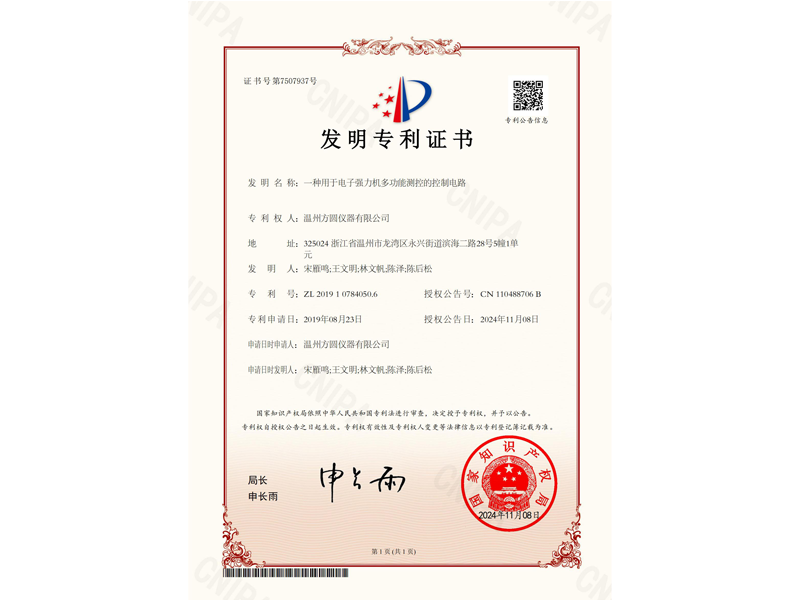 中國發(fā)明專利:一種用于電子強力機多功能測控的控制電路(ZL 2019 1 0784050.6)