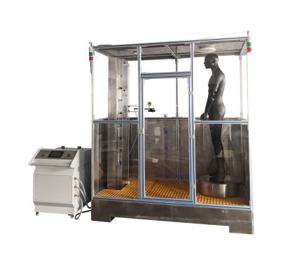 防護(hù)服噴濺噴射測(cè)試裝置適用于酸堿類化學(xué)品防護(hù)服噴濺噴射液密性的測(cè)試。